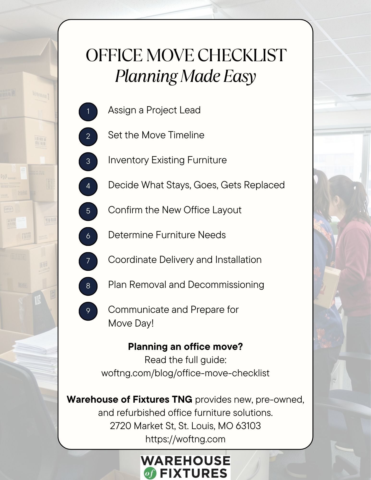 Without a plan, office moves can create downtime, confusion, unexpected costs, and last-minute furniture issues. With the right checklist, they become far more manageable.